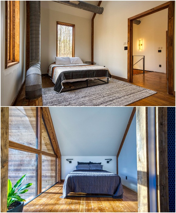 Интерьер спальных комнат, расположенных на втором этаже лесной хижины Catskills Cabin (Кэтскилл, США).