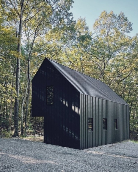 Как следует из названия, этот лесной дом расположен в пригороде Кэтскилла, в заповедной зоне между рекой Гудзон и Катскильскими горами. Авторы проекта вдохновлялись традиционным дизайном альпийских шале, чтобы загородная резиденция гармонично вписалась в живописный пейзаж. Этому поспособствовали особая форма строения, грамотное использованием древесины, черный цвет фасада, натуральный цвет кедра внутренней отделки террасы и масштабное остекление.