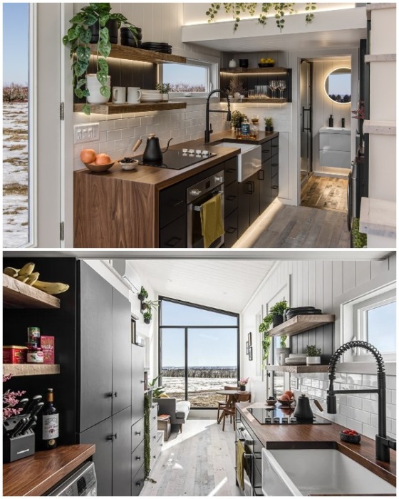 Благоустроенная кухня в миниатюрном мобильном доме (The Luna, США).