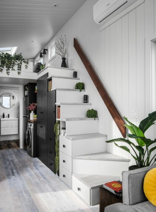 В спальню можно попасть по лестнице, встроенную в кладовку (The Luna, США). | Фото: newatlas.com.