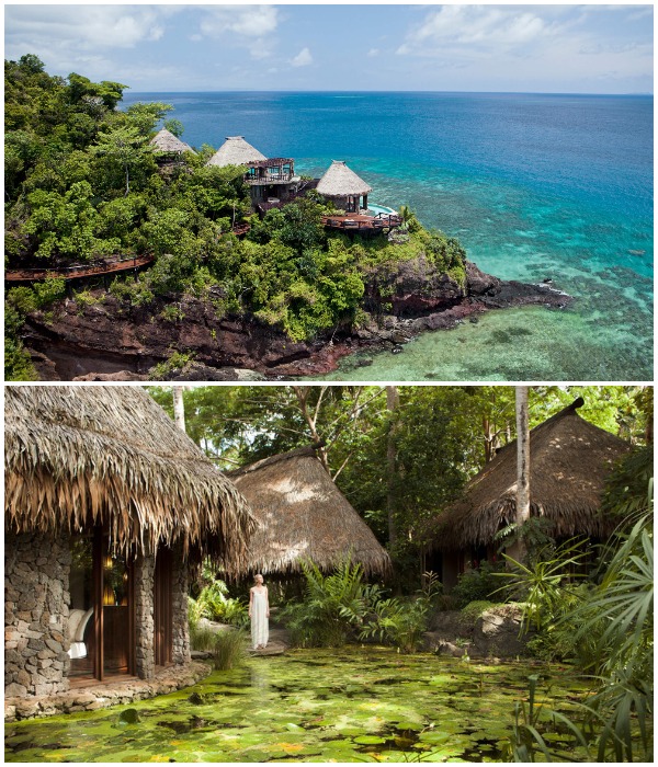 Курорт COMO Shambhala расположен на острове Лаукала в водах Меланезии (Фиджи). Несмотря на то, что на острове имеется сразу 25 люксовых резиденций, гости смогут наслаждаться уединением, ведь все они разбросаны по территории: на песчаных пляжах, над лагунами, в джунглях или на вершинах скал. Роскошные виллы оформлены в лучших традициях тропических бунгало: соломенные крыши, лучшие породы древесины, открытые террасы, частичное отсутствие стен, масштабное остекление, чтобы беспрепятственно любоваться фантастической красотой джунглей, моря и гор, собственные панорамные бассейны и это, не считая просто фантастической общей зоны отдыха.