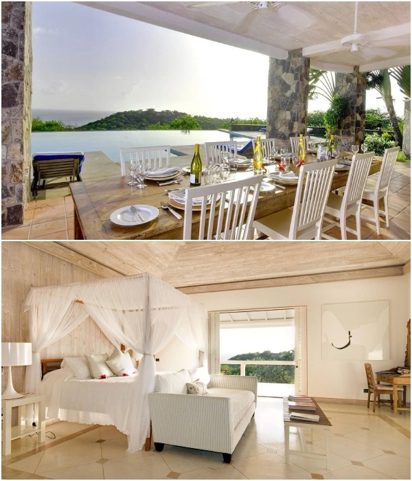 Еще один гостевой дом предлагает постояльцам уединенный отдых только он находится в Карибском море, на одном из островов крошечного государства Сент-Винсент и Гренадины. Вилла, расположенная среди дикой природы, может похвастаться огромной площадью жилых зон и террасы, где гости весело проводят время, встречают рассвет или организовывают романтический ужин, а также большим панорамным бассейном, который линией горизонта сливается с водами Карибского моря.