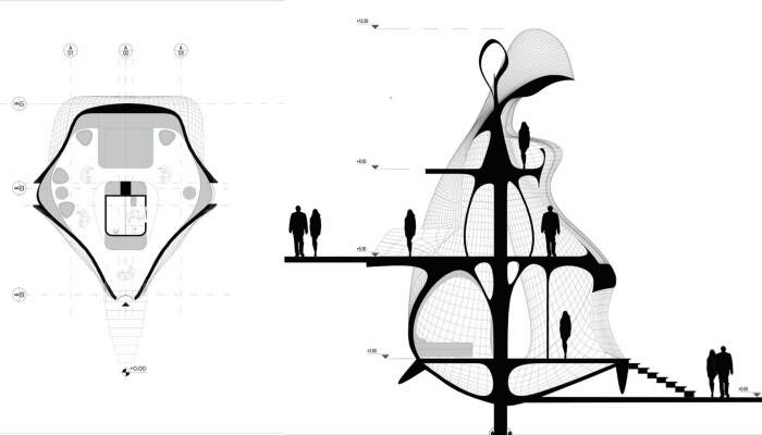 Конструкционная особенность: Энергетическая башня покрыта гибкими солнечными панелями, а ее вершина с помощью ветра может вращаться на 360 градусов, генерируя дополнительный поток энергии. Внедрение комбинированных преобразователей возобновляемой энергии позволит обеспечивать электричеством не только себя, но и соседей или даже населенный пункт, ведь проект задуман как самодостаточная деревушка, которая существует в гармонии с природой.