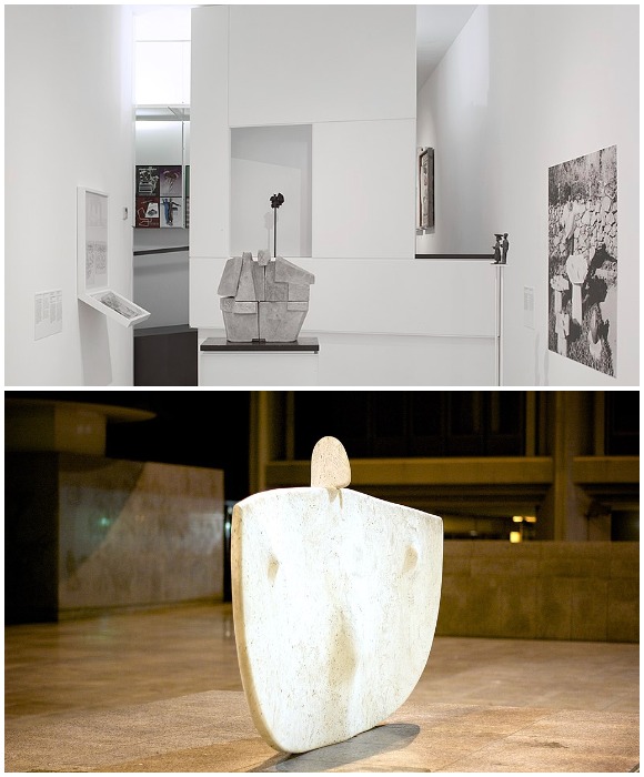 Экспозиция музея творчества Costantino Nivola и его скульптура «Мать», формами которой вдохновлялись разработчики модульного дома Exosteel (Орани, Италия). Интересный факт: Инновационная разработка компании MASK Architects под названием Exosteel представлена в рамках более крупного проекта Madre Natura («Матушка природа»), направленный на то, чтобы сохранить и защитить наследие Костантино Ниволы, который родился в коммуне Орани. Для архитекторов было важно, чтобы уникальная концепция ссылалась на его работы не только эстетически, но и отдавала дань уважения его наследию, интегрируя современные методы и новейшие технологии в дизайн, сохраняя при этом связь с природой.