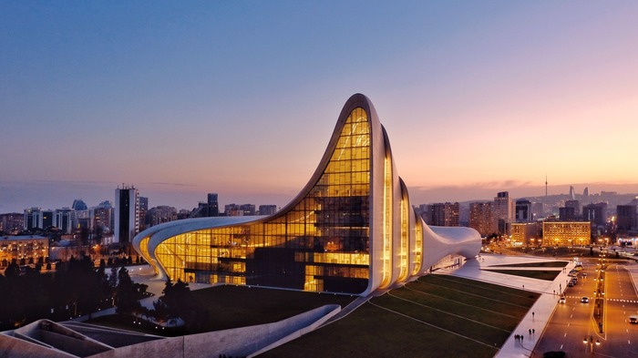 Культурный центр Гейдара Алиева находится на одноименном проспекте в столице Азербайджана. Автором этого необыкновенного комплексного сооружения стала легендарная Заха Хадид. Она же получила за него в 2014 году премию «Дизайн года», учрежденную Музеем дизайна в Лондоне, став первой женщиной, которая её удостоилась. Один из экспертов комиссии премии так отозвался о сооружении: «Это упоительно красивое здание блестящего архитектора на пике карьеры. Оно так же невинно и сексуально, как приподнятая ветром юбка Мэрилин Монро».