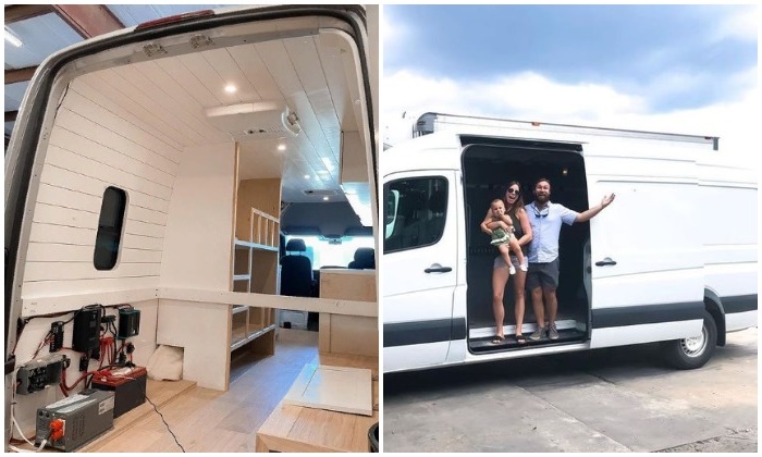 Супружеская пара из Сарасоты (штат Флорида, США) утверждает, что никогда не жили так счастливого, как сейчас – путешествуя в переоборудованном в автобусе с двумя малышами. Хотя буквально несколько лет назад у них была высокооплачиваемая работа и собственный дом с 4 спальнями, площадью 130 кв. метров. Авантюристы по натуре, Джанна и Джейк Бачовски (Gianna and Jake Bachowski), вскоре после свадьбы начали обдумывать вариант покупки автобуса, чтобы сменить оседлый образ жизни на путешествия. Через некоторое время им подвернулся приемлемый вариант покупки подержанного микроавтобуса, и они не упустили свой шанс. Распродав все имущество, покинув стабильную работу и хорошие должности, Джанна – в сфере недвижимости, а Джейк – в гостиничном бизнесе, они принялись за превращение автотранспорта в жилище.
