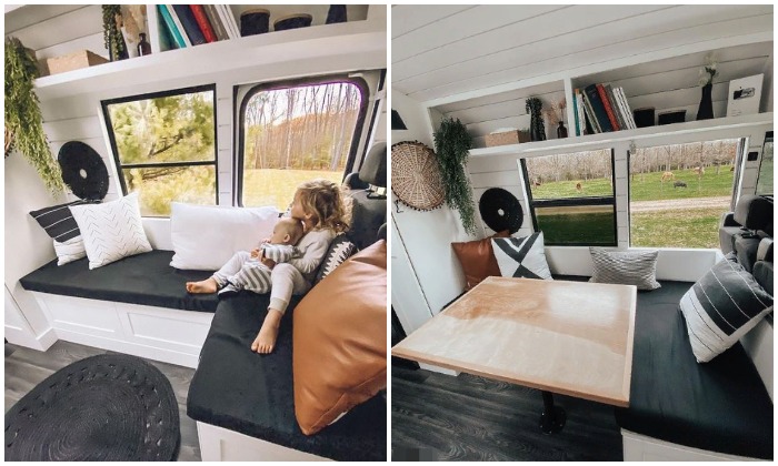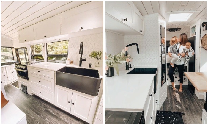 До рождения второго ребенка обустройство автобуса было завершено, теперь у Джанны, Джейка, Луны и малышки Капри есть благоустроенный дом, с которым можно путешествовать. Тем более, что новое жилище не только более просторное, но и комфортабельное. У кочевого семейства теперь есть небольшая гостиная-столовая с диваном, внутри которого можно хранить вещи, двухъярусные спальное место для родителей и старшей дочери Луны, хорошо оборудованная кухня, ванная комната и туалет. Мало того, что мобильный дом хорошенько утеплили, все равно провели отопление, чтобы можно было путешествовать в любое время года и в холодные регионы без боязни замерзнуть. Чтобы всегда иметь электричество, вне зависимости, где пройдет ближайшая ночь, установили солнечные батареи с преобразователями. Также предусмотрели емкости для запаса воды и сбора канализационных стоков.