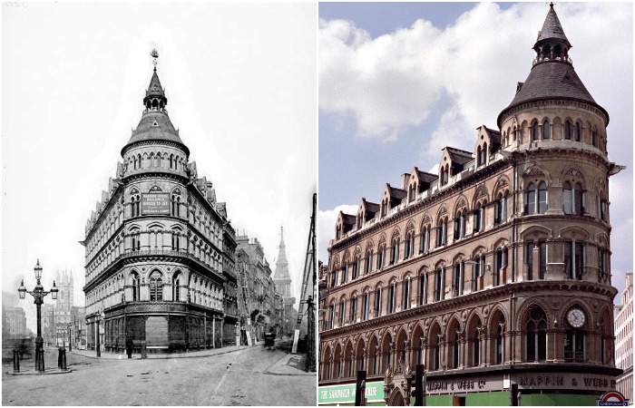 Чудовищная реновация коснулась и уникального треугольного здания, спроектированного Джоном Белчером (John Belcher) – известным архитектором, который в свое время был президентом Королевского института британских архитекторов. Начиная с 1870 г. неоготическое здание было главной изюминкой исторического центра Лондона, но эта красота долго не продержалась. В 1994 году после длительных споров его снесли и вскоре появилось строение, сразу же получившее название №1 Bird Building («Птичий дом №1», хотя официальное название Mappin & Webb Building), которое удостоилось звания «Самое уродливое здание Лондона» (по версии журнала Time Out).