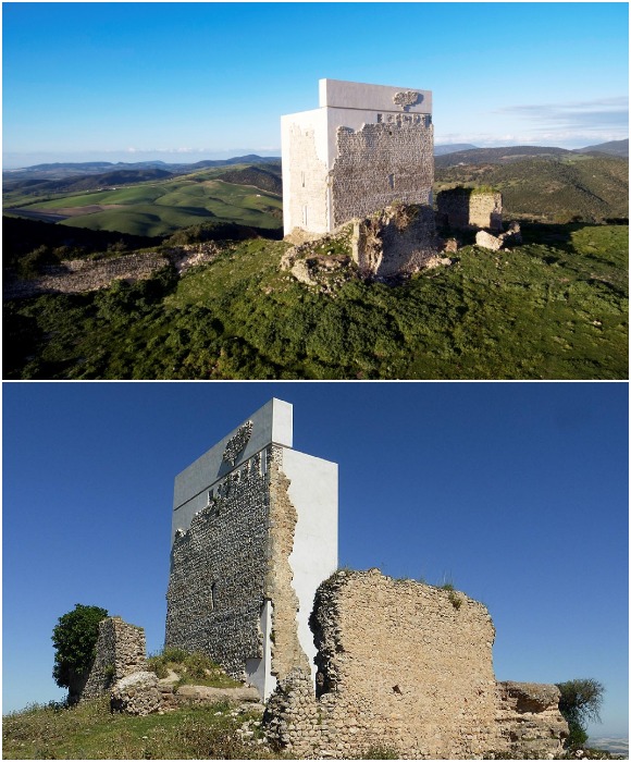 Когда старинный замок Матрера (Castillo de Matrera), построенный в IX веке, под натиском времени и безжалостных погодных условий рухнул (остались фрагменты стен), в 2013 г. власти испанского города Вильямартин задумались о сохранности того, что осталось. Поскольку на законодательном уровне страны запрещено производить миметические реконструкции (восстановление первоначального вида с применением современных технологий и материалов), архитекторам компании Carquero Arquitectura пришлось изыскивать возможности приостановления процесса разрушения. Так же им предстояло восстановить объем исторической достопримечательности, не нарушив нормы закона. В итоге на границе между живописной долиной и начинающегося горного хребта появился ну совсем неорганичный ориентир, хотя с сохранностью руин архитекторы справились.