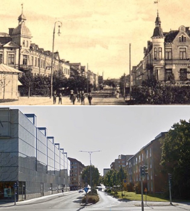 Вот такое убожество появилось в 1987 году на месте прекрасного здания (Уппсала, Швеция). | Фото: twitter.com.