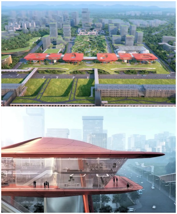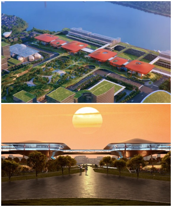 Шесть «шагающих» зданий больше похожи на инопланетных пришельцев, нашедших временное пристанище на берегу судоходной реки Янцзы (концепт The Cuntan International Cruise Centre). | Фото: wonderfulengineering.com.