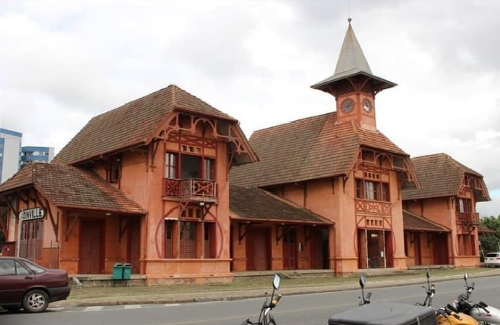 Здание железнодорожного вокзала Жоинвили было построен в 1906 году. По сведениям авторов Novate.ru, Жоинвили является крупнейшим городом штата Санта-Катарина, самым значимым финансовым и культурным центром региона. С конца XIX века славится особым влиянием немецкой культуры на культуру и быт жителей города. И заметно это в очертаниях памятников архитектуры, кулинарных изысках и образе жизни горожан даже в нынешнее время. Также стоит отметить, что в этой местности имеются диаспоры Польши, Италии и Украины, которые внесли свою лепту в национальные традиции.