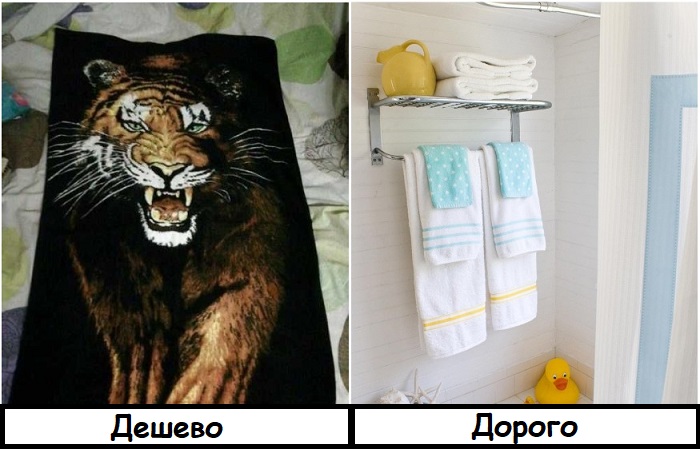 Синтетические изделия с рисунками плохого качества выцветают еще быстрее – после нескольких стирок их вполне можно использовать в качестве половых тряпок. По этой причине советуем покупать полотенца только из натуральных материалов: хлопка, бамбука и пр. Они смотрятся намного красивее и имеют большой срок годности (при условии грамотного ухода). Самым универсальным считается белый текстиль – он делает интерьер роскошным.