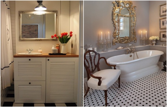 От зеркала редко ожидают слишком многого. Придерживаясь мнения, что оно призвано выполнять только одну функцию (демонстрировать отражение), мы совершенно забываем о его декоративных возможностях. А ведь зеркало способно стать акцентом, который будет привлекать внимание. Если хотите проверить это на практике, откажитесь от скучных изделий круглой, квадратной или прямоугольной формы. Отдавайте предпочтение нестандартному дизайну, чтобы добавить ванной индивидуальности. Кстати, можно не тратить деньги на покупку ультрамодных зеркал. Лучше загляните на блошиный рынок – при удачном стечении обстоятельств там можно найти настоящие бриллианты по приемлемым ценам.