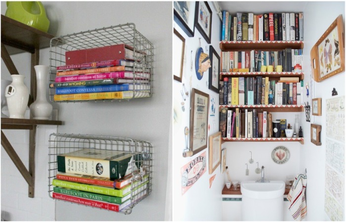 Книги можно разместить на полке или над раковиной