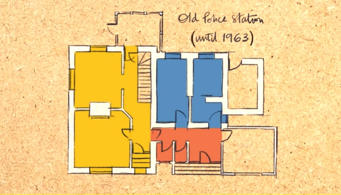 Планировка полицейского участка: Старинное двухэтажное здание в свое время было построено из природного камня с кирпичными перегородками. На первом этаже в последние годы перед закрытием был вход и холл для посетителей, блок для дежурного и комната для приема граждан. На втором этаже – оформлены жилые зоны. В какой-то период существования участка в них проживал инспектор или сержант со своими семьями, но чаще – это были помещения для отдыха полицейских, где предусмотрена жилая комната и кухня. В пристроенном крыле размещались две камеры для временного содержания задержанных и туалет с душевой.