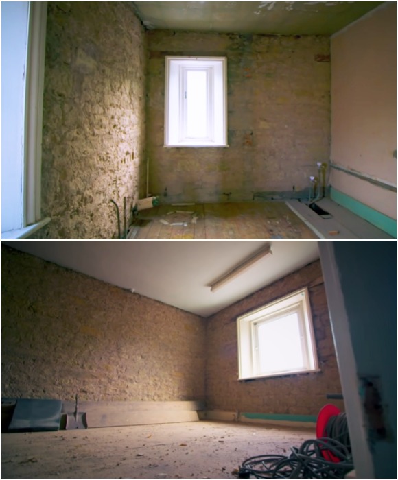 Для начала, Рэйчел вместе со своим парнем Майком, который является профессиональным строителем, продумали перепланировку и разработали проект ремонта, после чего приступили к работе. Ремонт начался с того, что пришлось убрать несколько перегородок, демонтировать толстый слой штукатурки, поменять старую крышу. При этом оставили решетчатые перегородки камер, кирпич и каменный пол в некоторых зонах.