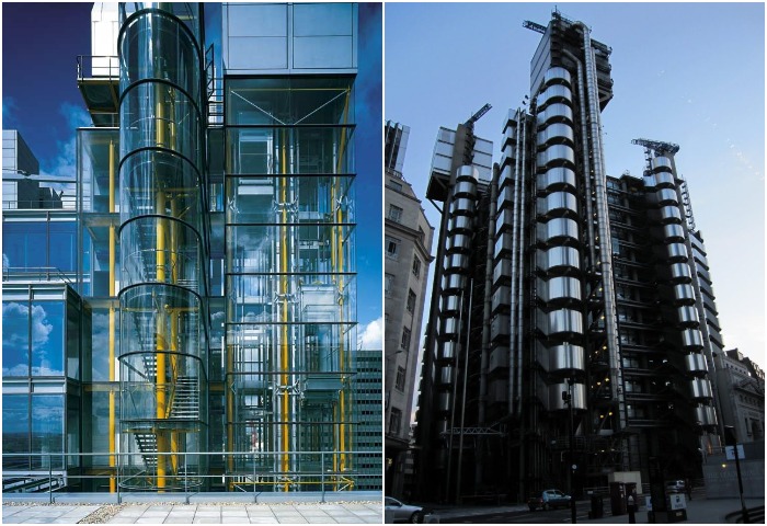 По своей эстетической направленности и принципах организации пространства хай-тек разделяют на индустриальный и геометрический. В первом случае на фасаде здания мы можем увидеть те архитектурные детали и инженерные коммуникации, которые находятся внутри сооружений – это лифты, трубопроводы, лестницы, системы вентиляции и другие инженерные элементы. Также можно наблюдать и неприкрытые металлические конструкции, которые ассоциируются с этажерками.