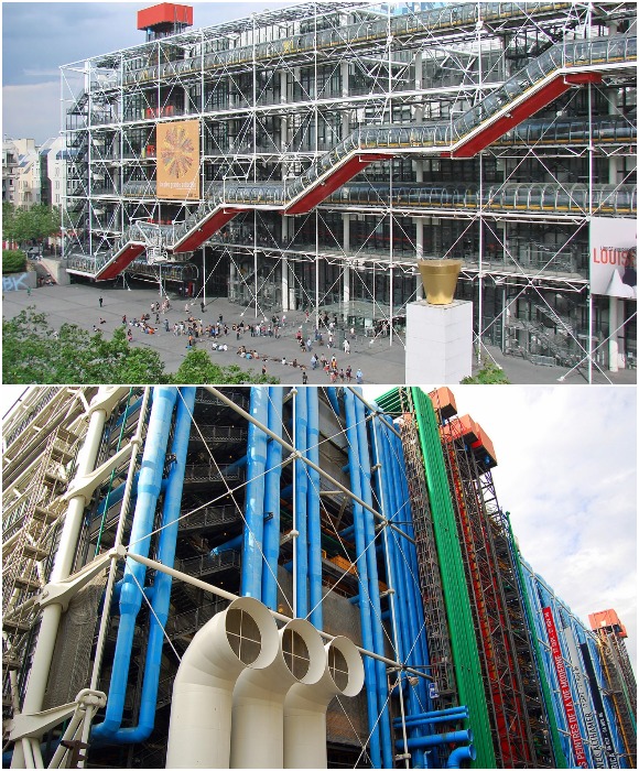 Появление экстраординарного проекта Национальный центр искусства и культуры Жоржа Помпиду в Париже вызвало не только повышенный интерес, но и неприятие (Франция). Первым культовым зданием, построенным в стиле hi-tech стал Национальный центр искусства и культуры Жоржа Помпиду (Париж), авторами которого стали Ренцо Пиано, Ричард Роджерс и Джанфранко Франчини. Несложно представить, как отнеслись в 1977 г. к такому творению французы и мировая общественность. Все в один голос называли Centre Georges-Pompidou нефтеперегонным заводом, который никак на похож на место, призванное стать Центром современного искусства. Спустя некоторое время страсти поутихли, многие пересмотрели свою точку зрения и теперь экстравагантное здание считается главной иконой стиля Франции.
