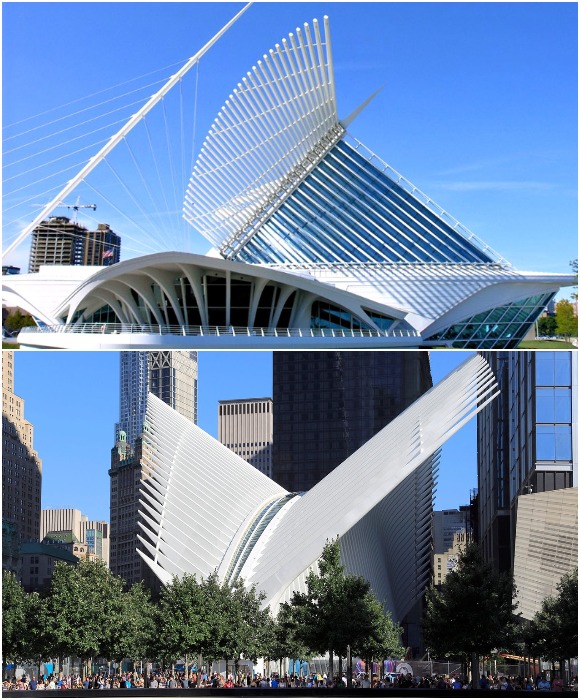 Белоснежные творения Сантьяго Калатравы, «крылья» которых изменяют свое положение в зависимости от движения солнца.
