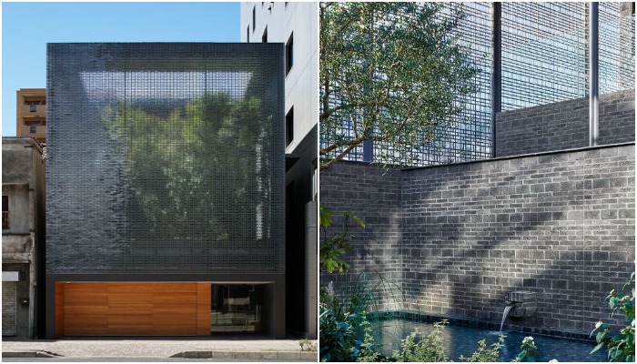Фасад из стеклянных кирпичей защищает дом и роскошный сад от городской суеты (Optical Glass Bricks, Хиросима).