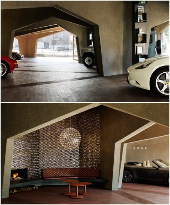 За бетонными шестиугольными стенами дома находится не только выставочное пространство, в нем живет автодилер со своей семьей (Graz).