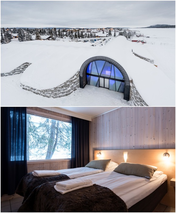Ну а пока лед, взятый из реки Торне, не превратился в воду и снова не оправился путешествовать по реке, уникальный арт-объект принимает всех желающих провести пару-тройку дней в настоящих ледяных дворцах и снежных пещерах, наслаждаясь первозданной красотой природы и Северным сиянием, которое в зимнюю пору здесь частый гость.