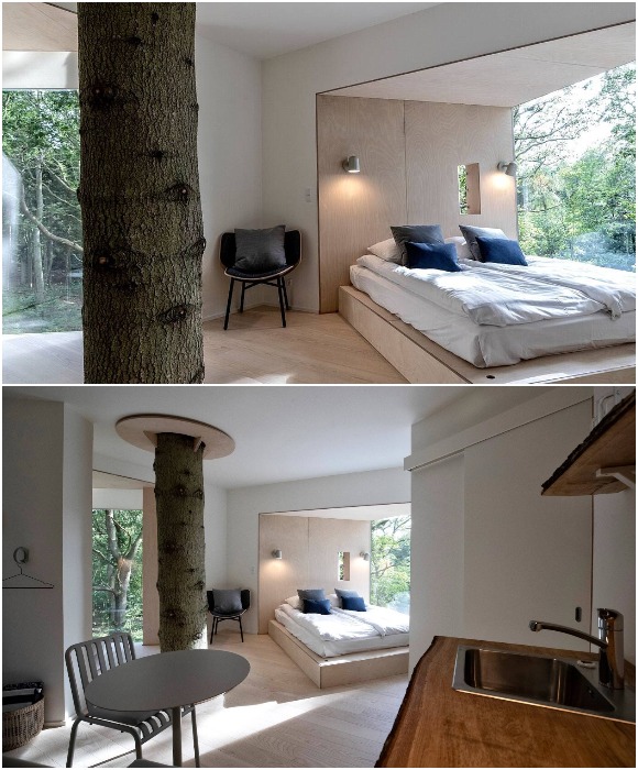 В каждом комфортабельном номере можно бесконечно любоваться красотой природы и наслаждаться тесным контактом с ней (Lovtag TreeTop, Дания).