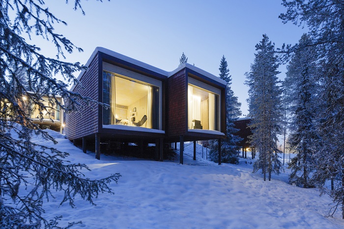 Люксы состоят из одного домика, но и в нем есть все необходимое для комфортного отдыха (Arctic TreeHouse, Финляндия). | Фото: arctictreehousehotel.com.