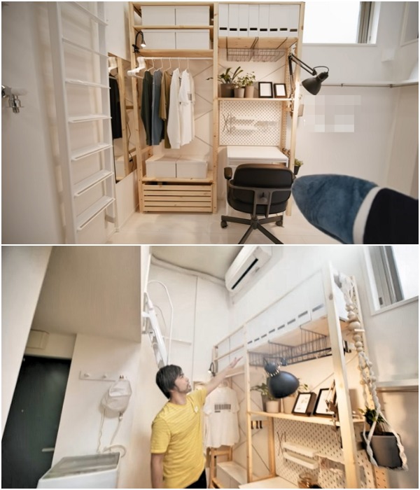 Спальня находится на втором уровне крошечной квартиры, площадь которой не превышает 10 «квадратов». | Фото: news.mingpao.com.