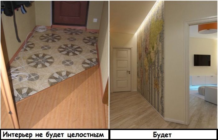 Если комната крохотная и имеет неправильную форму, откажитесь от контрастного пола. Он делит квартиру на маленькие, не связанные друг с другом зоны. Лучше берите пример с французов – они используют одинаковое напольное покрытие во всей квартире, чтобы оно плавно перетекало из помещения в помещение. Этот хитрый трюк зрительно увеличит имеющуюся площадь и сможет сделать пространство целостным. Также читайте Как организовать пространство в маленькой квартире, чтобы все смотрелось гармонично