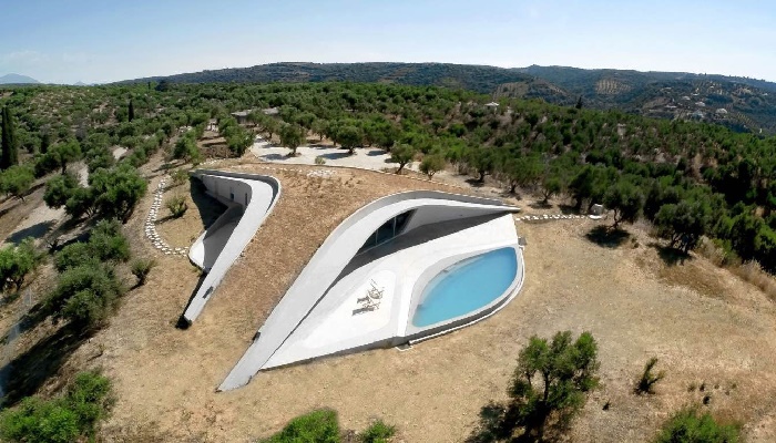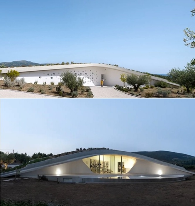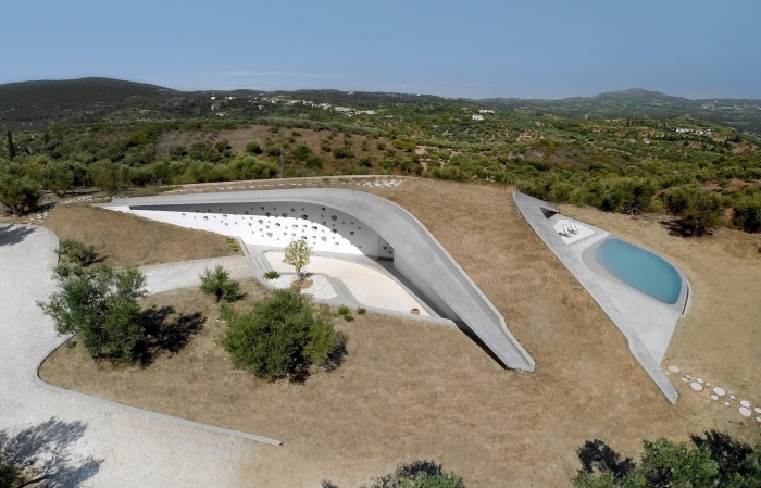 Эффектная интеграция летней резиденции-холма Villa Ypsilon в ландшафт полуострова Пелопоннес (Греция).