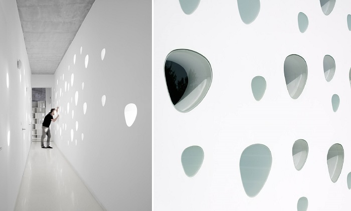 Серия оригинальных окошек неправильной формы в бетонной стене не только пропускает свет, она выступает в роли акцентной стены (Villa Ypsilon, Греция).