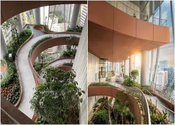 «Ботаническая набережная» внутри небоскреба начинается на высоте 100 метров над землей (CapitaSpring, Сингапур).