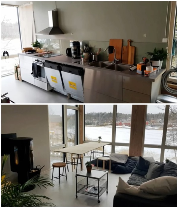Гостиная стала главным звеном, соединяющим общие пространства (Container House, Швеция). | Фото: manstham.com.