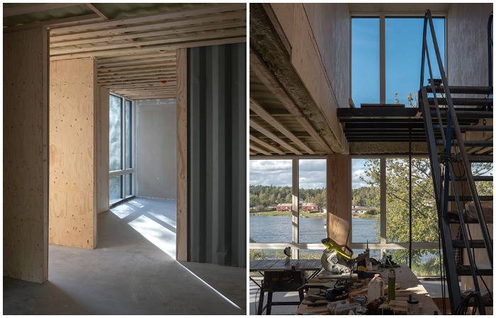 Изначально супруги хотели самостоятельно заниматься строительством, но вникнув в процесс, поняли, что без специалистов не справиться, поэтому они обратились к дизайнерам и инженерам студии Måns Tham Arkitektkontor. Профессионалы участвовали в разработке проекта, исследованиях местности, давали рекомендации по установке свай, помогли провести необходимые инженерные коммуникации. Специалисты студии также должны были разработать конструкцию лестниц, мостика и перил к ним, определиться с местом создания дымохода и вентиляции, с установкой водосточных желобов и труб канализации. Эти внедрения должны были полностью соответствовать строгим строительно-санитарным нормам Швеции, и дилетанты с такой задачей справиться никак не могли.