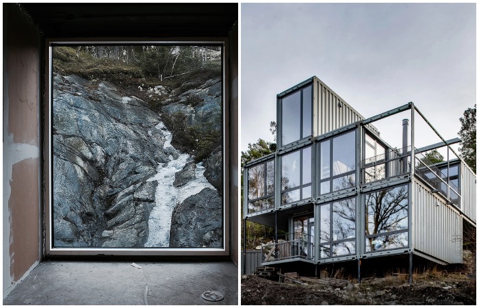 Масштабные окна позволяют солнечному свету проникать внутрь загородной резиденции (Container House, Швеция). | Фото: yankodesign.com.