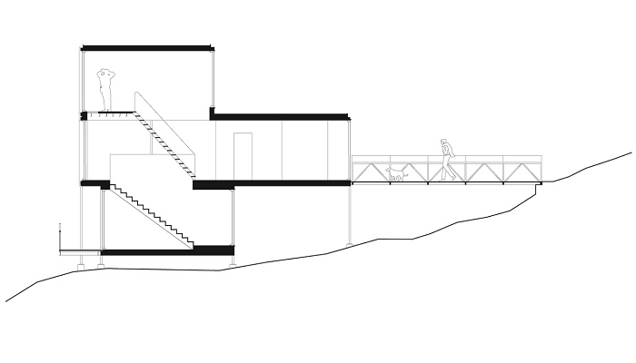 План-схема размещения дома на каменистом склоне (Container House, Швеция). | Фото: manstham.com. По сведениям авторов Novate.ru, разработкой проекта и масштабные работы по сборке Container House проводили специалисты студии, а вот переоборудованием контейнеров и отделочными процессами занимались сами заказчики, подключившие к строительству своих родственников. Учитывая, что строительство планировалось вести в природной зоне, где не имеется электричества, переоборудовать контейнеры пришлось в мастерской. Тем самым удалось сэкономить время на обустройство дома и минимизировать влияние на окружающую среду.