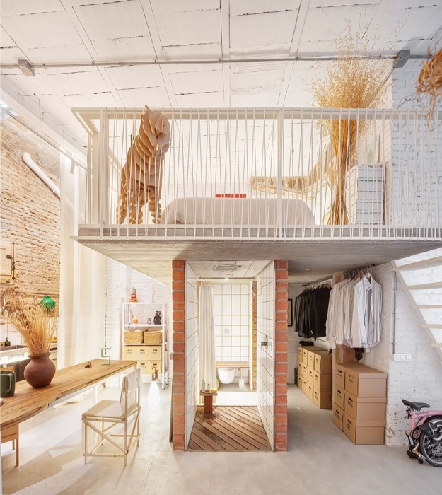 Гараж в старинном доме превратили в уютный лофт с мезонином (LoVt3 Apartment, Барселона). | Фото: planete-deco.fr.