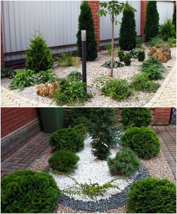 Увлекаться отсыпкой гравия не стоит, чтобы не превратить двор в грустный пустынный пейзаж. | Фото: samdizajner.ru.