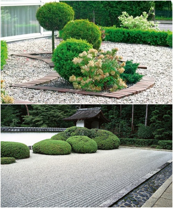 Примечательно: Издревле для обустройства садов, клумб и дорожек использовали природный камень, который является одним из самых распространенных и надежных материалов, применяемых в строительстве и отделочных работ в любом уголке земного шара. В зависимости от местности он может иметь разные оттенки и фактуру, что повлияло на формирование особенных национальных традиций в обустройстве гравийных садов.
