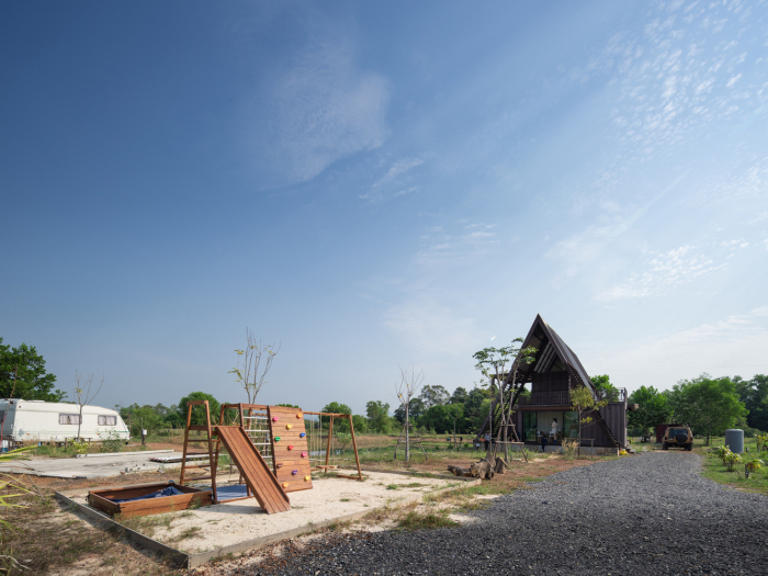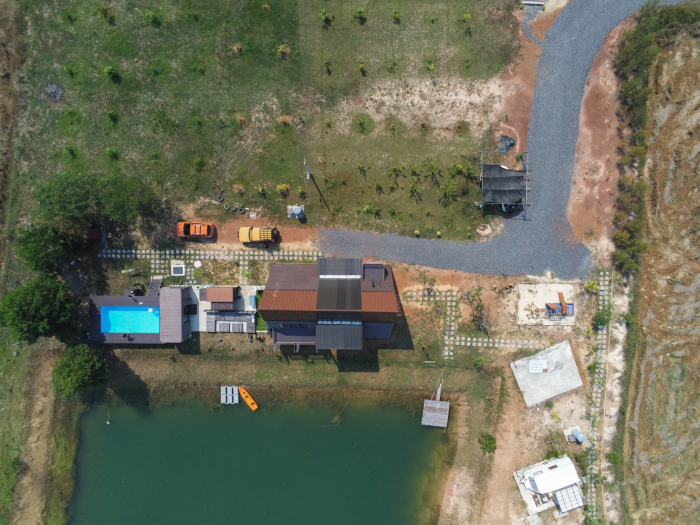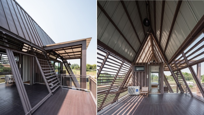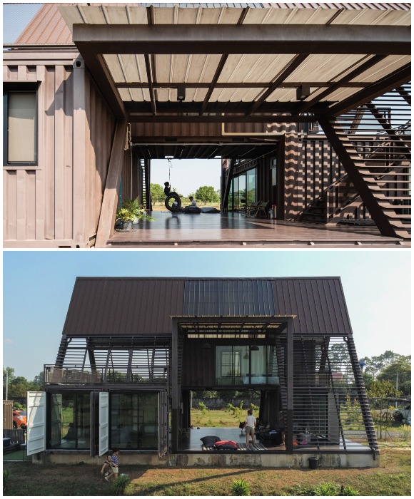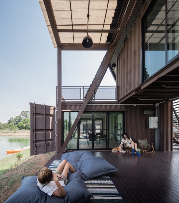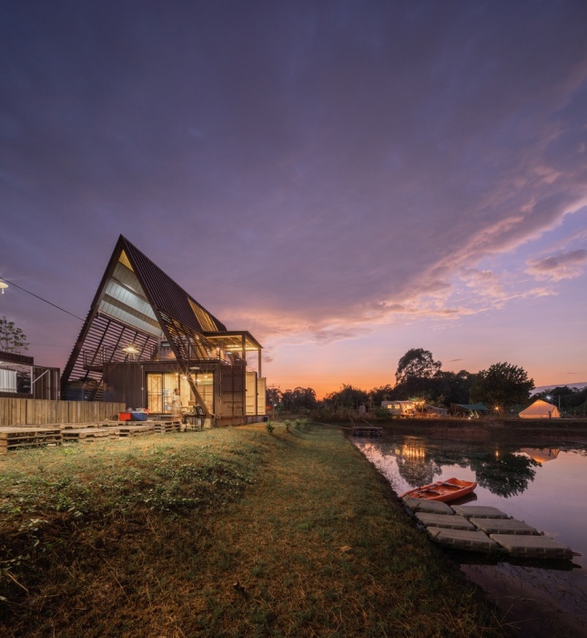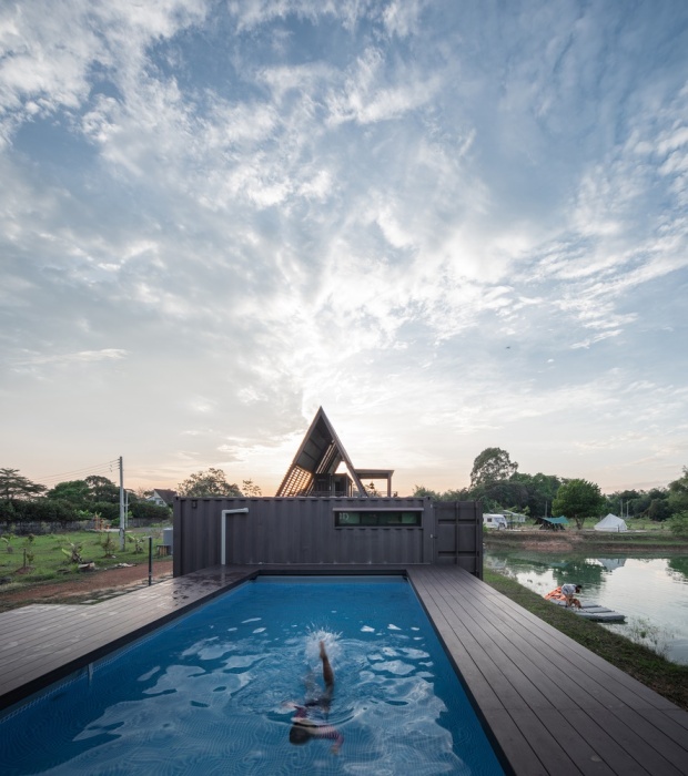 Контейнерный дом, имеющий непривычный вид, стал своеобразной достопримечательностью дачного поселка, расположенного в 200 км от Бангкока (Таиланд). Транспортные контейнеры, покрытые высокой А-образной крышей являются местом отдыха для семьи из нескольких поколений, которые стремятся «уйти от городской жизни» хотя бы на выходные.