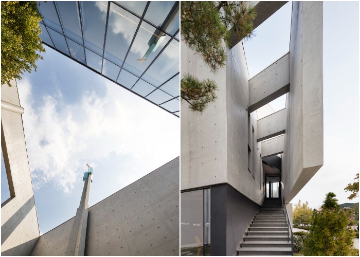 Эффектные детали и символ Святой Троицы стали главным украшением христианской церкви (Heavenly Gem Church, Южная Корея). Основной концепцией дизайна стало воплощение Святой Троицы, которое выражается в создании приподнятого над землей треугольного объема, обрамляющего голубое небо, чтобы запечатлеть символ, означающий небеса.
