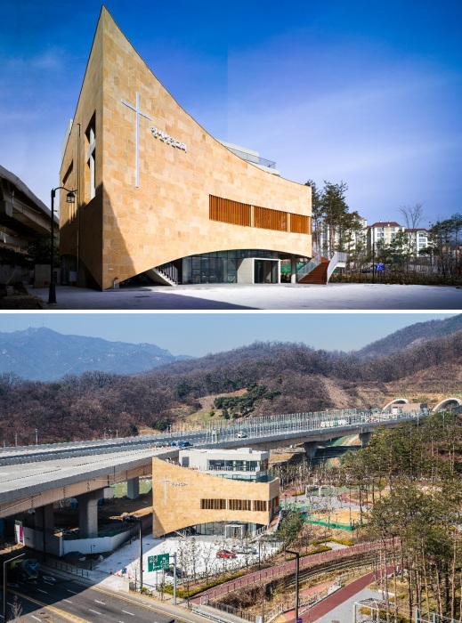 Так уж повелось, что под строительство новых церквей в Южной Корее выделяют самые неудобные и крошечные участки земли, как правило, вдоль дорог и на пересечении улиц. Христианский храм в расстраивающемся районе Суджи-гу, города Йонгин, начали строить на узком участке со значительными перепадами высоты рельефа. Тем не менее такие сложности лишь подтолкнули архитекторов студии Lee Eunseok+KOMA на создание неординарного объекта.
