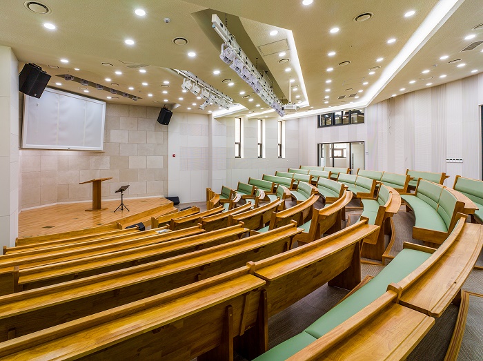 Пресытившись строительством бизнес-центров и сплошных торгово-развлекательных объектов, власти города выделили небольшой клочок земли под возведение христианской церкви. Компактный участок и наклонная плоскость рельефа вынудили архитекторов искать новые походы к проектированию. Благодаря стараниям коллективу специалистов из Heesoo Kwak + IDMM Architects новая часовня имеет вид взгроможденных друг на друга объемов разных размеров и форм, что позволило значительно увеличить ее внутреннее пространство.