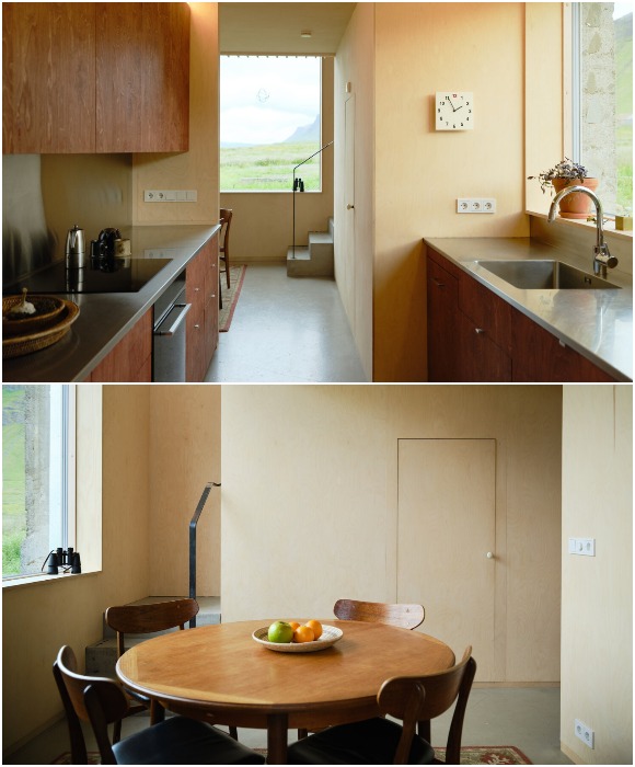 Кухня и столовая получились небольшими, ведь львиную долю площади отвели под обустройство мастерской и галереи (Студия художника Хлодуберга, Исландия).