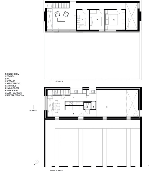План-чертеж загородного дома-мастерской, разработанный Studio Bua. | Фото: studiobua.com.