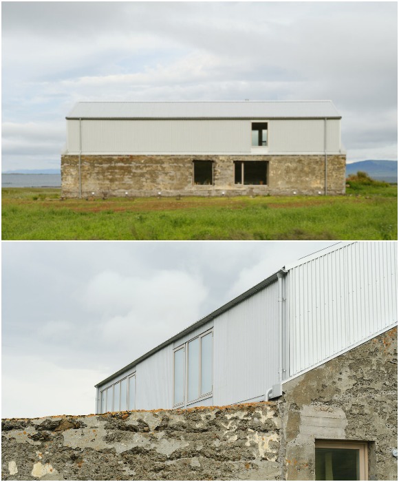 Руины бетонного сарая стали фундаментом для загородной резиденции (Студия художника Хлодуберга, Исландия). | Фото: archdaily.com.