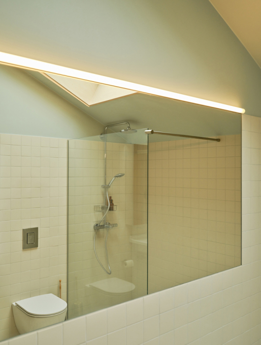 Интерьер ванной комнаты на втором этаже загородного дома (Студия художника Хлодуберга, Исландия). | Фото: studiobua.com.