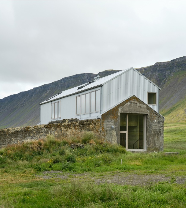 Все чаще архитекторы стремятся не разрушить старые здания, а наоборот, вдохнуть в них новую жизнь. Причем так, что остатки былого сооружения становятся основой для будущего творения, которое по мере возможности органично вписывается в окружающий ландшафт и структуру объекта. Так произошло в сельской местности Skarðsströnd, в Исландии, где на обширной территории разбросано несколько заброшенных хозпостроек, которые требуют восстановления. Раньше это были фермы, амбары и сараи выполняющие разные функции, но за ненадобностью они были заброшены. Если учесть, что все эти структуры находятся среди живописных лугов природного заповедника Брейдафьордур (Breiðafjörður Nature Reserve), то неудивительно, что их хотят использовать более рационально.
